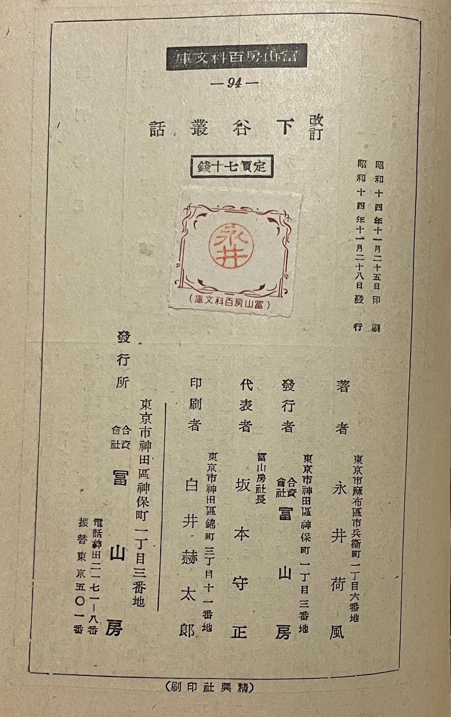 改訂 下谷叢話 / 永井荷風